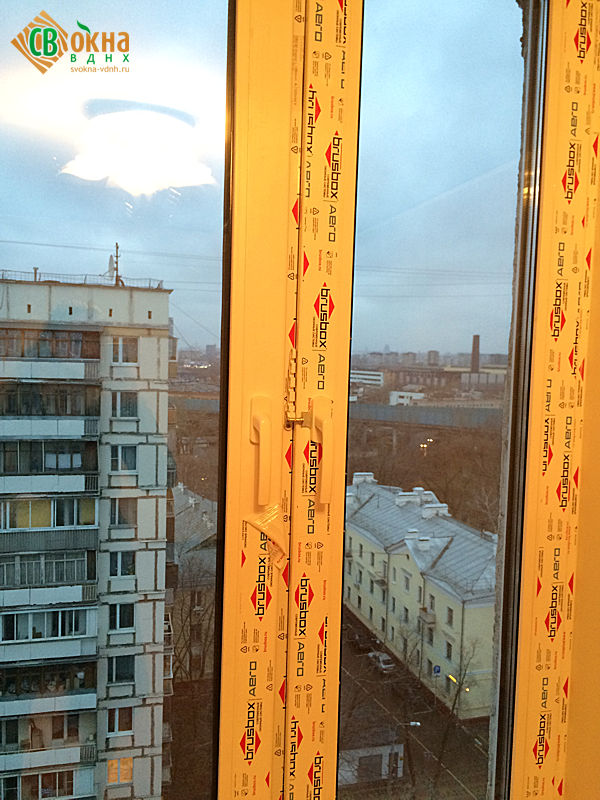 Остекление квартиры в панельном доме пластиковыми окнами из профиля Brusbox SUPER AERO 70 мм. Подоконники пластиковые Vitrage. Отделка откосов - сендвич-панели.